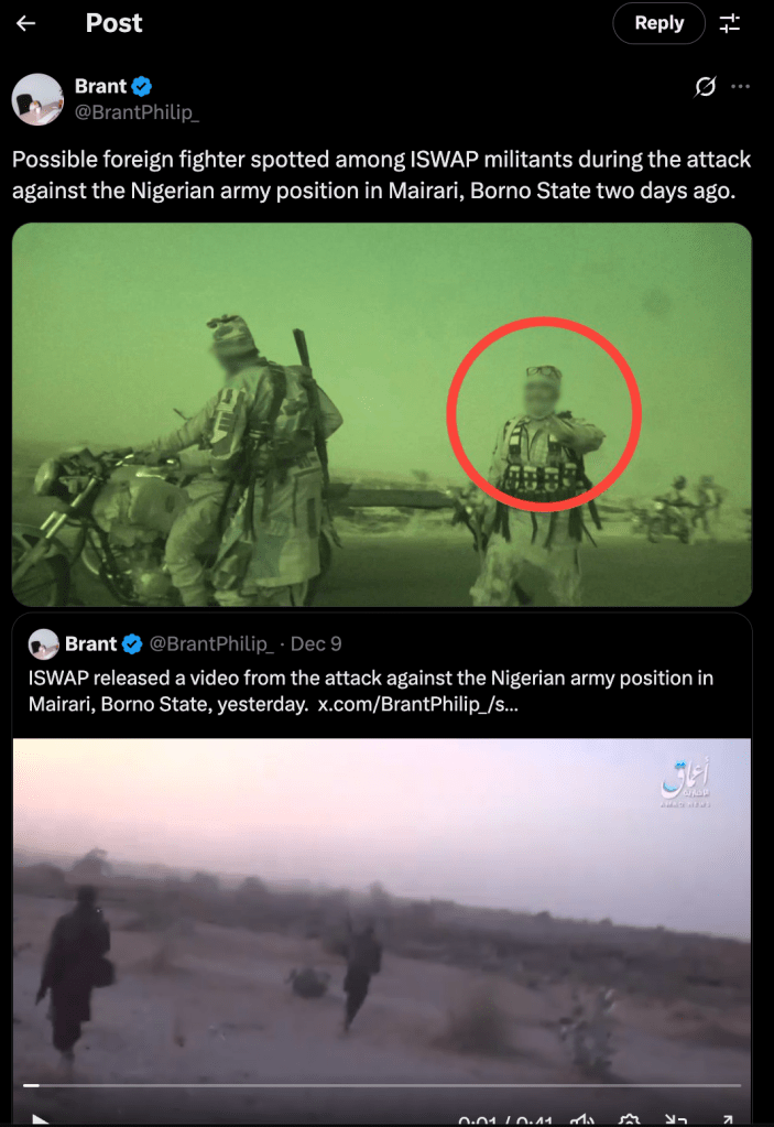 Uncategorized ISWAP (Amaq) – Video of “Liquidation of Supporters of Nigeria” and Numerous Miscellaneous Other Claims – 2019 (and earlier/later) April 11, 2019 twochibokchristiansdec252019Download iswapsept92018glimpseofbattleofgarundaDownload iswapcapturebagaphotosjan102019Download iswapgradrocketsmaiduguriclaimDownload diffamarch2019attackclaimDownload iswapnigermarch222019gradrocketsDownload diffaamaqclaimapril192019Download albayan9april2019cameroonclaimDownload iswapfeb132019claimconvoyattackDownload iswapjan22019claimattackyobeDownload iswapmamariattackreportmay42019Download Al-Bayan May 4, 2019 Magumeri Barracks Attack Claim iswestafricabaghdadivideowatchingmay12019Download alnaba179page7april252019chibokchurchDownload naba179postapril252019Download naba179page9articleapril252019hitandruntacticsDownload alnaba166page12iswapinfographicDownload 31jan19alnaba166iswapinfographicbengaliDownload lakechadgurundaaug82016iswapattackswdroneDownload april142019svbiedalansariclaimiswap23killedDownload april102019killongmukhtarofgajirambornoDownload april102019revengeforshamclaimsincludinginghimasiDownload april302019claimof38killedbyiswapDownload alnaba175march282019jihadiinburkinanigermaliDownload march222019iswapburkinaclaimDownload iswapamaqhausajuly172017Download dec222018iswapcapturedsoldieramaqDownload iswapjan82019soldiersindamasakbornoDownload april132019menakaiswapclaimDownload naba180may22019targetingmsfDownload may162019claimsofkoutakaleprisonandtongotongonigerattacksDownload iswapgubioclaimmay222019Download iswapmay272019sabongariambushDownload may272019iswapclaimcivilianjtfattackkanamaDownload june-and-july-2019-gajiram-and-damboa-iswap-photoclaimsDownload iswapjuly72019damboaphotoseriesDownload iswapjuly142019martephotoseriesDownload iswapjuly142019kirinwaphotoseriesDownload may162019iswapmaliborderclaimDownload iswapjan30217progressbattlesyobeDownload iswapsept252016claimsmartyrdomops-1Download iswapjune42016bossoclaim-1Download iswapjune72016kanamaclaim-1Download iswapjune72016diffaclaim-1Download iswapsept242016mallamfatoriphotreportDownload iswapdec102016ribatfrontlineslakechadDownload iswapdec32016fightingafricancoalitionkangarwaDownload dec62016iswaphisba-1Download amaqjan122017injiniattackDownload Share this: Click to share on X (Opens in new window) X Click to share on Facebook (Opens in new window) Facebook Like Loading... Related Post navigation ← Boko Haram – Video called Refusers of Injustices (Al-Urwha Al-Wutqha) – February 22, 2015 Boko Haram – Video of ThisDay Bombing – May 2012 → About Zenn View all posts by Zenn → Leave a comment Cancel replyBasic HTML allowed. Δ