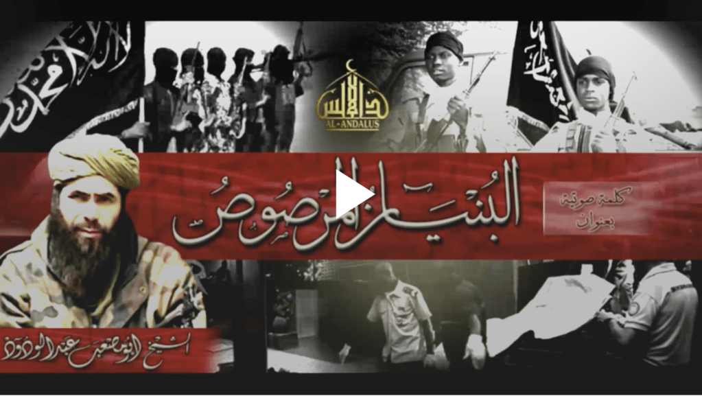 Uncategorized MUJWA, al-Murabitun, Belmokhtar, AQIM, ISGS, Ansar al-Din – Assortment of Media – 2012 onwards May 9, 2019 abuzeidassuringfrenchhostageswithaqcdec262012Download jan12013mujwacreedDownload alsahrawikatibatansaralsunnajan52013Download abusharidmujwagaojune262012Download MUJWA sharia video, January 4, 2013 MUJWA Video of Bombing in Algeria, January 10, 2013 January 18, 2013 MUJWA Video about “Heroes” December 30, 2012 Ansar al-Din video of Ag Ghaly, Kufa lecturing fighters in Timbuktu ansaraldinjuly82012Download aug82012ansaraldinnewsletterDownload msmazawadmurderedtablighisstatementoct302012Download January 15, 2013 Ansar al-Din fighters in Konna, Mali Belmokhtar March 7, 2015 Claim of Bamako Attack Al-Murabitun’s al-Qasimi Confirms AQ Loyalty, December 4, 2015 aug152015bybloshotelclaimsmurabitunDownload aljazeeraalmurabitunclaimsattackmalianhotelaug92015Download aug132015alurabitumrebrandaqwaDownload aug162015alurabitumrebrandaqwaretractionDownload Droukdel, “Regarding Al-Murabitun Joining Al-Qaeda, Claiming the Recent Mali Operation, and Message to the West,” December 3, 2015. Claim of Romanian Hostage by AQIM-Murabitun, Oct 31, 2016 Belmokhtar Allegedly with Algerian DRS, May 6, 2016 Al-Sahrawi May 19, 2015 Pledge of Loyalty to IS and Claim Romanian Hostage Al-Sahrawi October 31, 2016 Pledge to IS in name of al-Murabitun rumiyah3november2016sahrawimentionDownload albayan1nov2016arabicmurabitunpledgetoisisDownload menastreamislibyafightersdec212018Download menastreamjune52017twitteradqasimiDownload menastreamnov212019badycousinalgeriaDownload Share this: Click to share on X (Opens in new window) X Click to share on Facebook (Opens in new window) Facebook Like Loading... Related Post navigation ← Aymen al-Zawahiri – The Three Shaykhs of Jihad (including eulogy to al-Bulaydi), January 16, 2017 Borno State Government – White Paper on Religious Disturbances in Bulumkuttu Area of Maiduguri on 26-29 October 1982 – November 1982 (and NBS Poverty Statistics 2005 and Population Census 2006) → About Zenn View all posts by Zenn → Leave a comment Cancel replyBasic HTML allowed. Δ